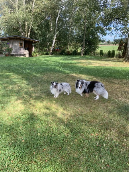 Sie folgten dem Jaulen, kamen dabei vom Weg ab, da sie, um dem Geräusch zu folgen, die Hauptstaße verlassen mußten, um in einen Feldweg einzubiegen. Das Jaulen wurde deutlicher und nach etwa 100 Metern lag unter einer hohen Linde ein großer Hund mit weißem langem Fell, der traurig dreinblickte und sich eine Pfote leckte. Merkwürdigerweise trug er kein Halsband und sah auch nicht aus, als würde er in einem Haus leben. Er wirkte unabhängig und frei.