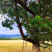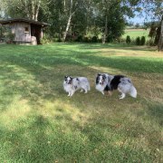 So warteten Nina und Karl einige Minuten verwundert, nachdem die Bäuerin im Haus verschwunden war. Schließlich erschien sie wieder mit etwas in der Hand. Den Geschwistern wurde fast mulmig, als sie sahen, was es war. Nina flüsterte: „Das ist mein Halstuch, Karl, erinnerst du dich?“ Die Bäuerin : „Vor vielen Jahren hatten wir einen weißen Hirtenhund, der fast nie zuhause war. Immer trieb er sich überall herum und wir sahen ihn oft tagelang hintereinander nicht. Es war ein besonderer Hund, wir hatten alle großen Respekt vor ihm, denn er hatte einen festen Charakter und strahlte etwas aus, das einem bewußt machte, dass er unabhängig und frei war. Einmal war er sehr lange unterwegs und als er wieder kam, humpelte er ein wenig. Um die linke Vorderpfote war dieses Tuch sorgsam wie ein Verband gewickelt, und ich machte mir Sorgen, dass er ernsthaft verletzt sein könnte. Als ich nachsah, war die Wunde quasi verheilt und scheinbar humpelte er nicht aufgrund der Wunde, sondern, weil ihn das Tuch beim Gehen störte. Ich wollte es ihm abnehmen, doch konnte mich ihm nicht nähern. Irgendetwas hielt mich ab, als ob es eine Schranke gäbe, die ich nicht überschreiten konnte. Der Hund sah mir in die Augen und ich wusste, was er mir mitteilen wollte: Sollte eines Tages, egal wann, eine besondere junge Frau mit einem etwas jüngeren besonderen Mann hier vorbeikommen, so sollte ich dieser Frau das Halstuch geben, denn es sei ihres. Im Stillen fragte ich, an was ich diese junge Frau und den Mann erkennen würde. Im Blick des Hundes erhielt ich die Antwort: ‚Du wirst es sofort wissen, dein Bauchgefühl wird es dir augenblicklich verraten.‘ Und so war es, ich sah euch beide kommen und wusste, der Hund meinte euch.“